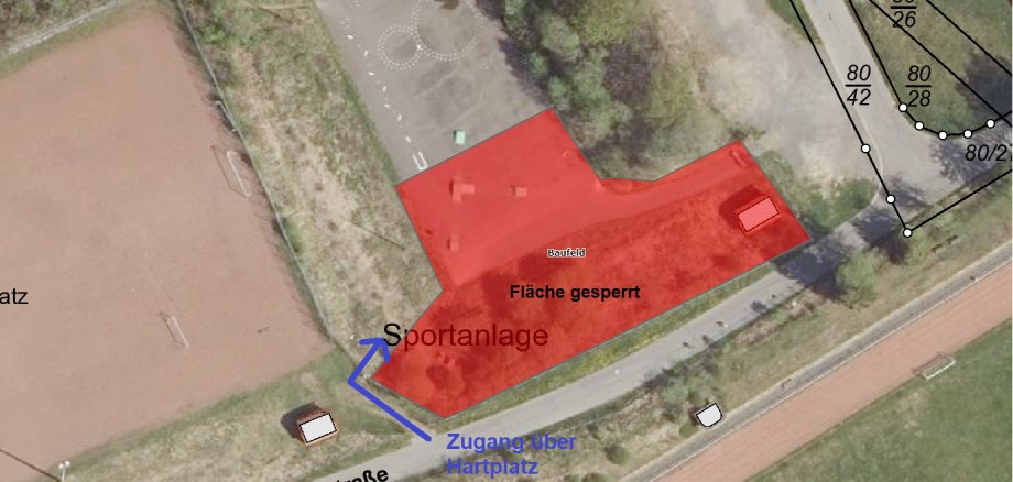 Für alle Arbeiten benötigen die Firmen etwas Arbeitsraum, um sich auf dem Baufeld bewegen zu können. Hierfür muss ein Teil der bestehenden Spielfläche im Asphaltbereich abgesperrt werden und ist deshalb nur teilweise zugänglich. Über den Hauptzugang des Multifunktionsplatzes werden sich Baustellenfahrzeuge bewegen. Aus diesem Grund wird dieser Zugang bzw. die Zufahrt auch gesperrt werden müssen.
