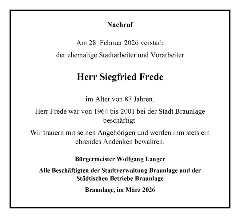Herr Frede war von 1964 bis 2001 bei der Stadt Braunlage beschäftigt.