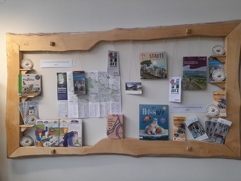 Auf der Aktionswand in der Braunlager Stadt- und Schulbücherei wurden Bücher zum Thema Nachhaltigkeit, Klimawandel und Mobilität vorgestellt, genauso wie Flyer und andere passende Materialien. Laut Büchereileiterin Imke Koch kam das gut an: Viele Kinder waren an der Aktionswand interessiert und ließen sich für Ihre Ausleihauswahl davon inspirieren.